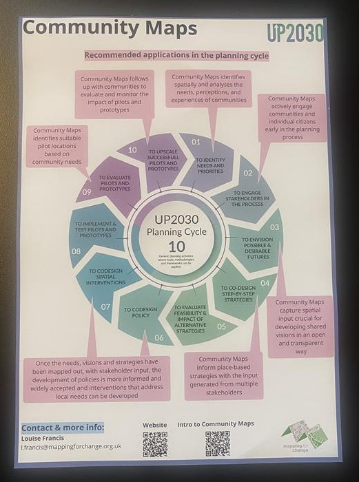 For Mapping for Change, it was a milestone moment. After three years of collaboration within UP2030, we finally saw our tool, Community Maps, showcased in an interactive workshop alongside seven other innovative solutions. Seeing these tools in action – and the people behind them – was a true celebration of collective effort and progress.